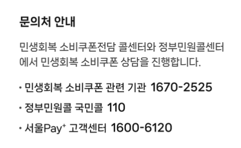 - 민생회복 소비쿠폰 콜센터: 1670-2525